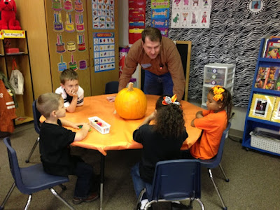 - On Friday, October 26th, from 1:15-2:30 we will have a special Pumpkin Math event here in the classroom! I need 5 parents to volunteer their time, a large pumpkin and a knife to help us. Each parent will use a script, provided by me, and conduct different math and science activities with the pumpkin. It ends with carving and lighting the Jack O' Lanterns! Please let me know if you would like to help!